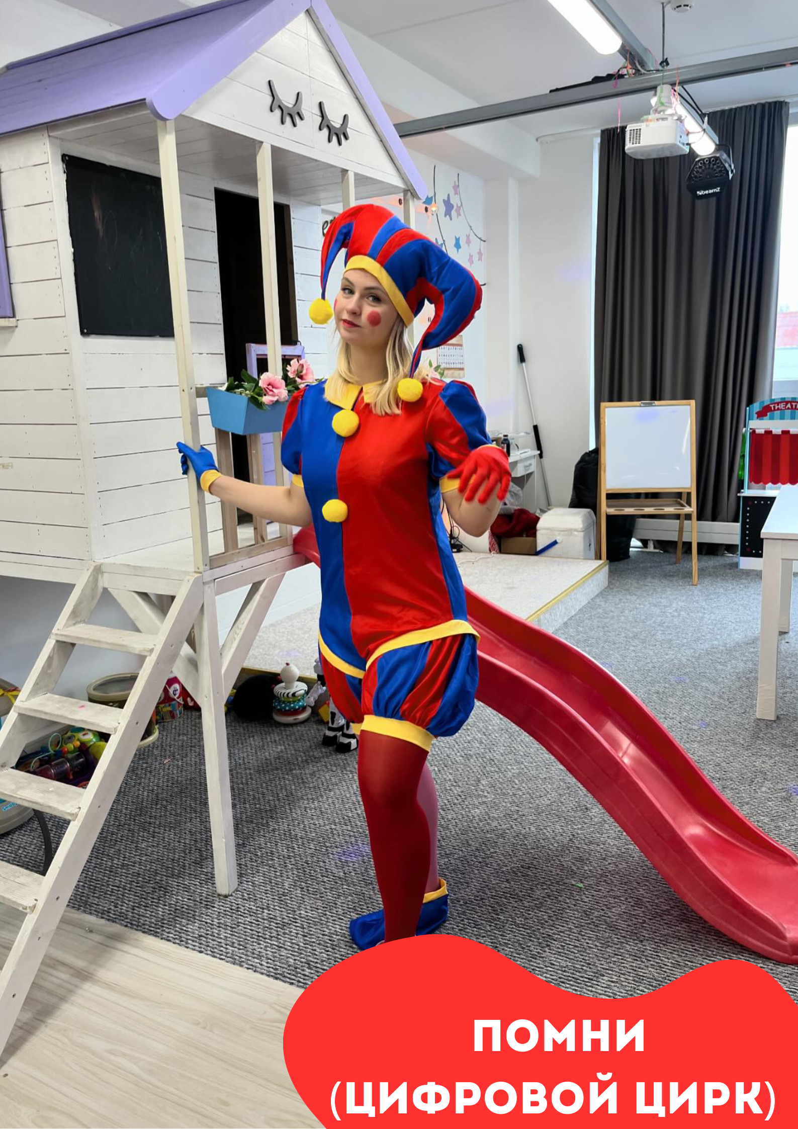Игровая зона а также сцена и проектор, караоке