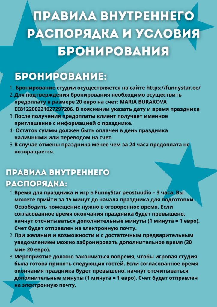 Уже более 8 лет мы организовываем и проводим замечательные детские мероприятия, которые остаются в памяти наших именинников и их близких! Наше студия находится в районе Ласнамяэ. Наши развлекательные программы хорошо подойдут для ребят от 6 до 15 лет !