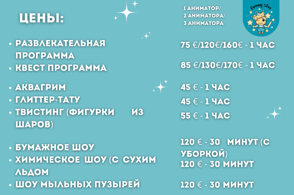 Для оформления заказа необходима следующая информация: точная дата и время праздника, место проведения, выбранная программа и персонаж, имя и возраст именинника, количество гостей, контактный номер телефона. Предоставьте данную информацию на нашу почту: fun4formula@gmail.com или напишите нам в социальных сетях!